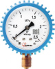 Газовый (сварочный) манометр серии МП2-Уф отечественного производства АО «ПО Физтех» используется для измерения и контроля давления газа в замкнутой системе с максимальной рабочей температурой до 120°C. Его запрещается использовать в работе с агрессивными, вязкими и кристаллизующимися рабочими средами. Применяется в баллонных редукторах и регуляторах. Прибор имеет диаметр корпуса 50 мм, радиальное исполнение (штуцер снизу), класс точности 2,5 и степень защиты IP40. Корпус газового манометра от Физтех имеет цветовую индикацию в зависимости от измеряемой среды: кислородный (О2) манометр – синий; ацетиленовый (С2Н2) манометр – белый; пропановый (С3Н8) манометр – красный. Прибор может поставляться с красной регулируемой стрелкой на стекле и с защитным кожухом (это доп. опция).